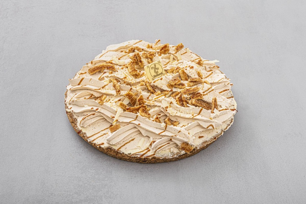 Harde wenerbodem, gevuld met banketbakkersroom en caramelbavaroise.
